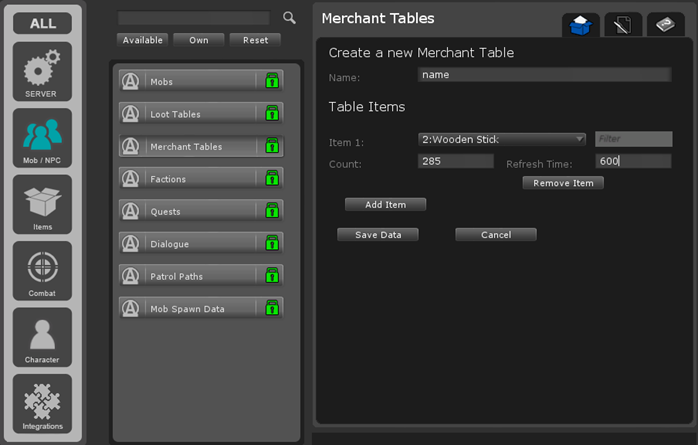 商家表可以附加到Mob / NPC,它应该与玩家交易。它可以通过使用游戏中的spawner来完成。详细信息可以在Mobs Plugin Configuration部分找到。